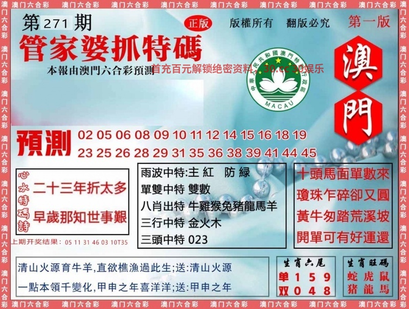 271期:澳门三头【2头.3头.4头】开鼠06错 |