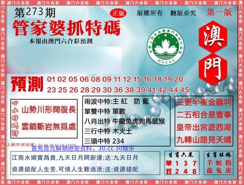 273期:澳门三头【0头.1头.4头】开虎04准 |