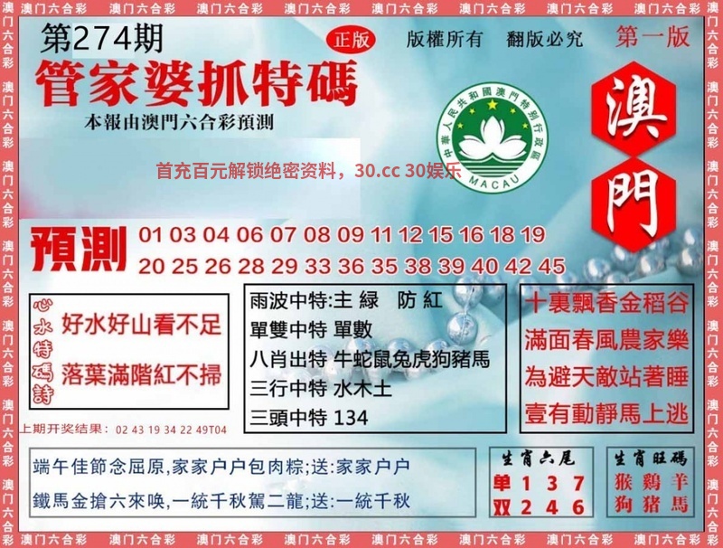 274期:澳门三头【0头.2头.4头】开狗44准 |